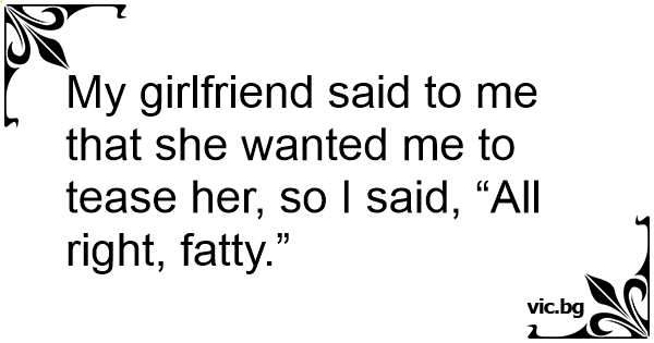 My girlfriend said to me that she wanted me to tease her, so I said, “All right, fatty.”