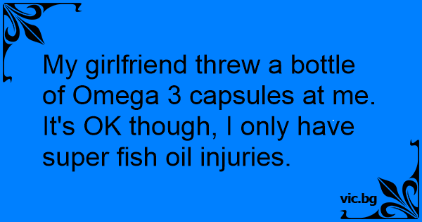 My girlfriend threw a bottle of Omega 3 capsules at me.