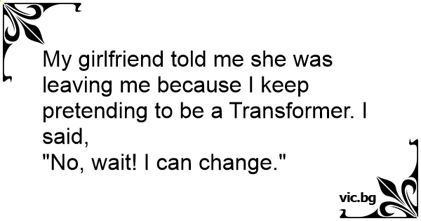 My girlfriend told me she was leaving me because I keep pretending to be a Transformer. I said,