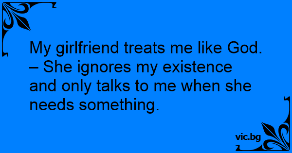 My girlfriend treats me like God. – She ignores my existence and only talks to me when she needs something.