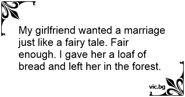 My girlfriend wanted a marriage just like a fairy tale. Fair enough. I gave her a loaf of bread and left her in the forest.