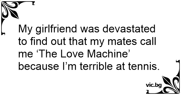 My girlfriend was devastated to find out that my mates call me ‘The Love Machine’ because I’m terrible at tennis.