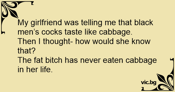 My girlfriend was telling me that black men’s соскs taste like cabbage.