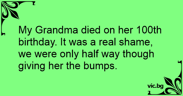 My Grandma died on her 100th birthday. It was a real shame, we were only half way though giving her the bumps.