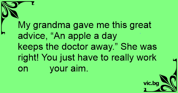 My grandma gave me this great advice, “An apple a day keeps the doctor away.” She was right! You just have to really work on your aim.
