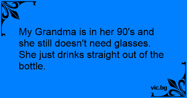 My Grandma is in her 90's and she still doesn't need glasses. She just drinks straight out of the bottle.