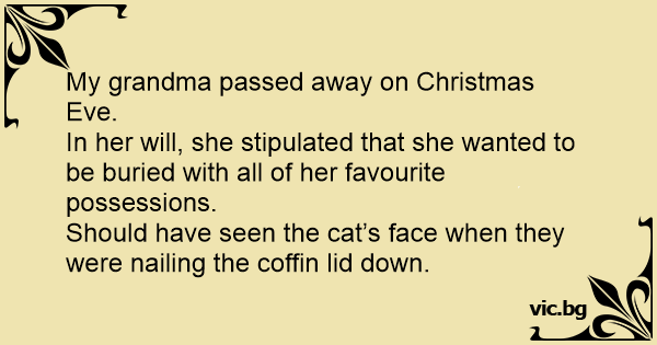 Should have seen the cat’s face when they were nailing the coffin lid down.