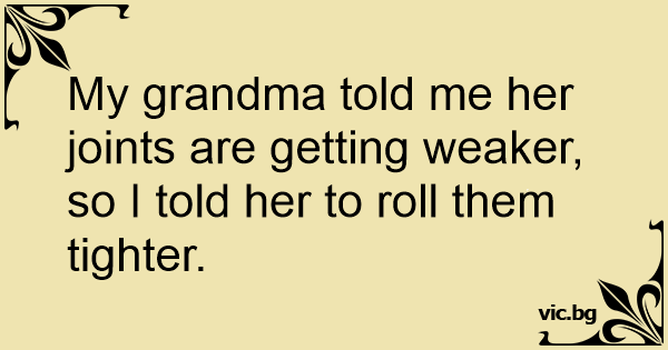 My grandma told me her joints are getting weaker, so I told her to roll them tighter.