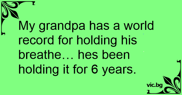 My grandpa has a world record for holding his breathe… hes been holding it for 6 years.