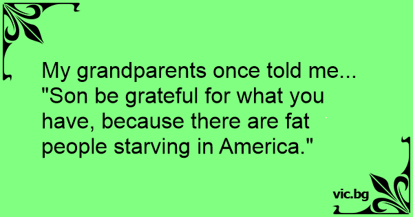 My grandparents once told me...<br />"Son be grateful for what you have, because there are fат people starving in America."