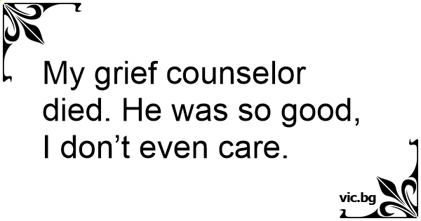My grief counselor died. He was so good, I don’t even care.
