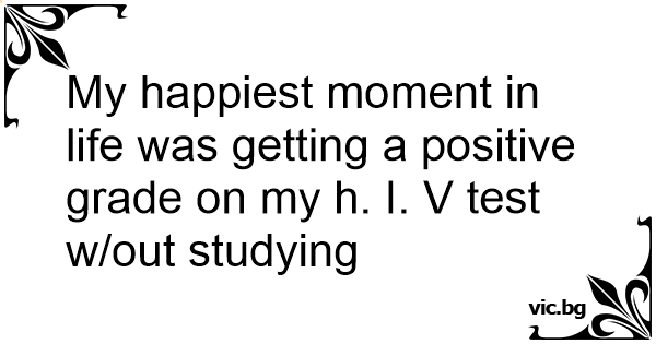 My happiest moment in life was getting a positive grade on my h. I. V test w/out studying