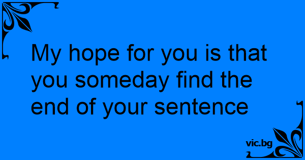 My hope for you is that you someday find the end of your sentence