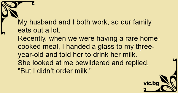 She looked at me bewildered and replied, "But I didn’t order milk."
