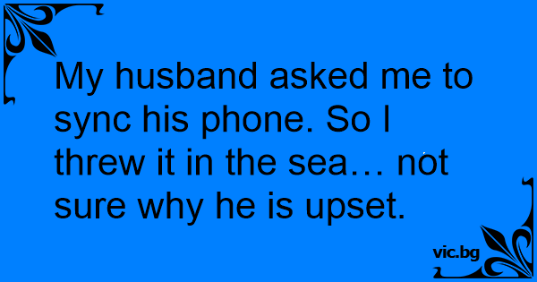 My husband asked me to sync his phone. So I threw it in the sea… not sure why he is upset.