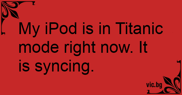 My iPod is in Titanic mode right now. It is syncing.