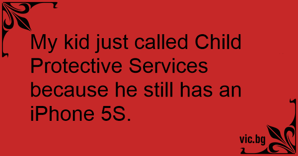 My kid just called Child Protective Services because he still has an iPhone 5S. 0 0 0 Kids Jokes Apple and iPhone Jokes