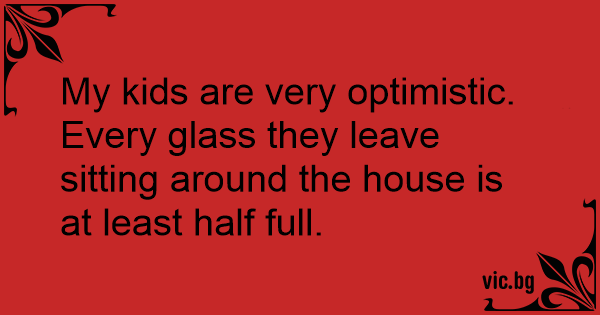 My kids are very optimistic. Every glass they leave sitting around the house is at least half full.