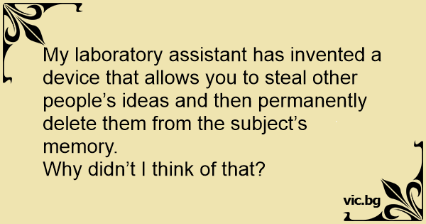 My laboratory assistant has invented a device that allows you to steal other people’s ideas and then permanently delete them from the subject’s memory.