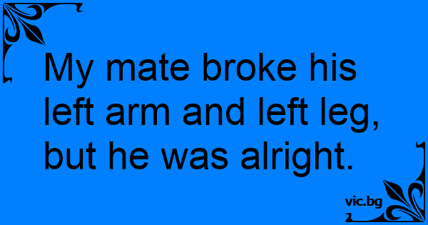 My mate broke his left arm...