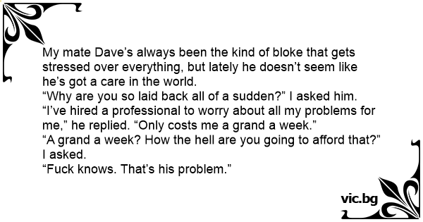 “I’ve hired a professional to worry about all my problems for me,” he replied. “Only costs me a grand a week.”