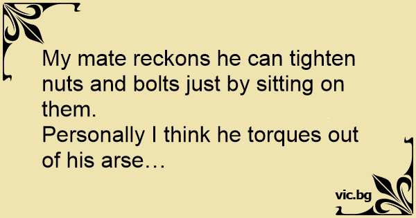 My mate reckons he can tighten nuts and bolts just by sitting on them.