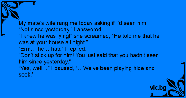 “Yes, well…” I paused, “…We’ve been playing hide and seek.”