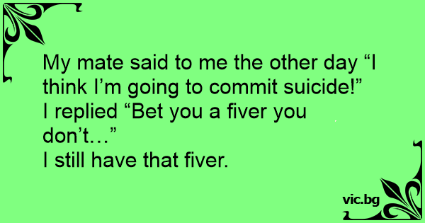 My mate said to me the other day “I think I’m going to commit suicide!”