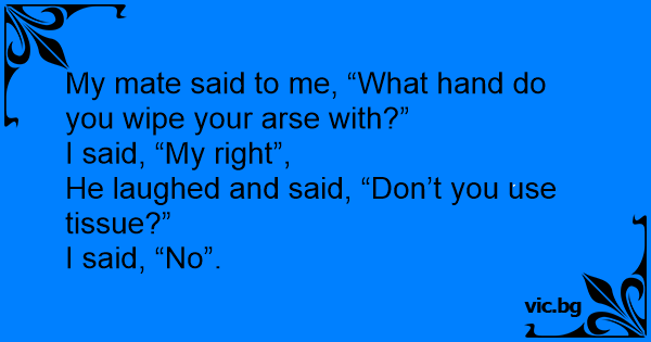 My mate said to me, “What hand do you wipe your аrsе with?”