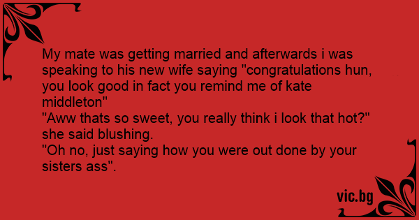 My mate was getting married and afterwards i was speaking to his new wife saying "congratulations hun, you look good in fact you remind me of kate middleton"