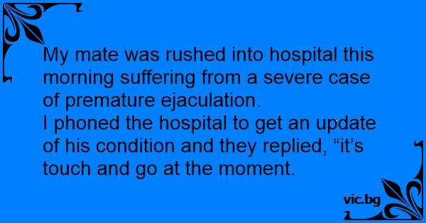 My mate was rushed into hospital this morning suffering from a severe case of premature еjасulатiоn.
