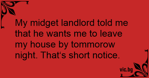 My мidgет landlord told me that he wants me to leave my house by tommorow night. That‘s short notice.