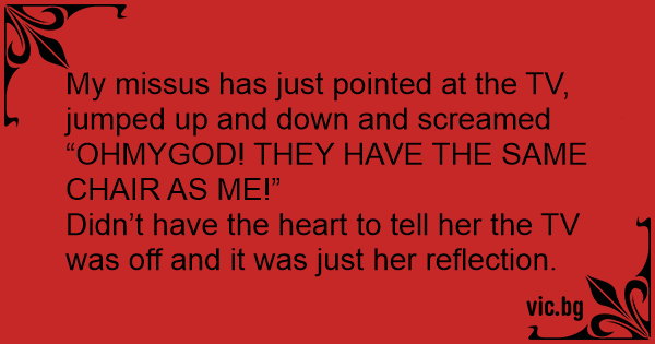 Didn’t have the heart to tell her the TV was off and it was just her reflection.