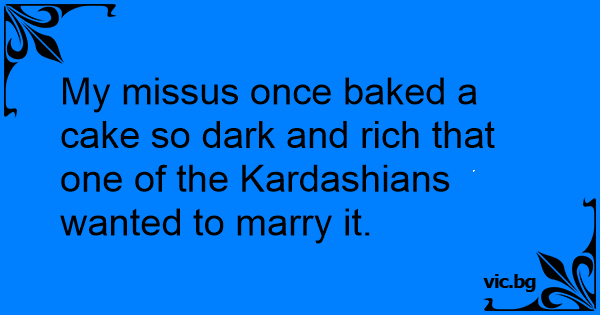 My missus once baked a cake so dark and rich that one of the Kardashians wanted to marry it.