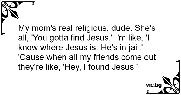 My mom's real religious, dude. She's all, 'You gotta find Jesus.' I'm like, 'I know where Jesus is. He's in jail.'