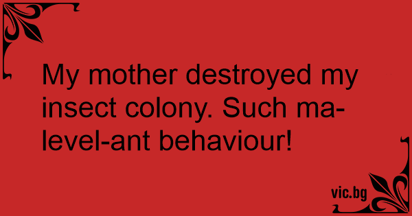 My mother destroyed my insect colony. Such ma-level-ant behaviour!