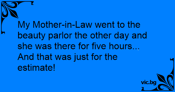 My Mother-in-Law went to the beauty parlor the other day and she was there for five hours...