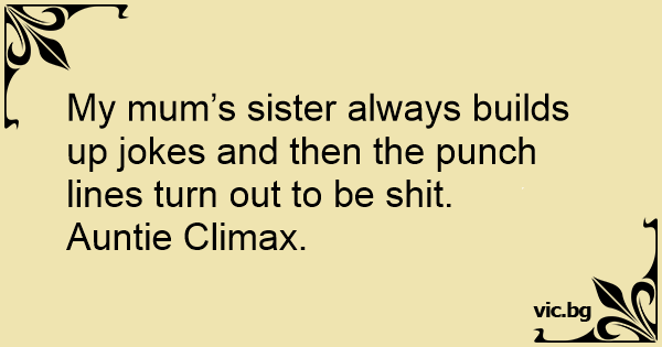 My mum’s sister always builds up jokes and then the punch lines turn out to be shiт.