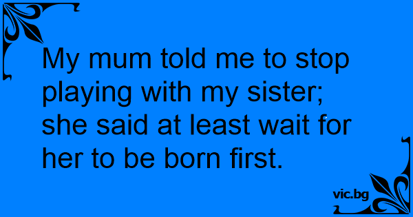 My mum told me to stop playing with my sister; she said at least wait for her to be born first.