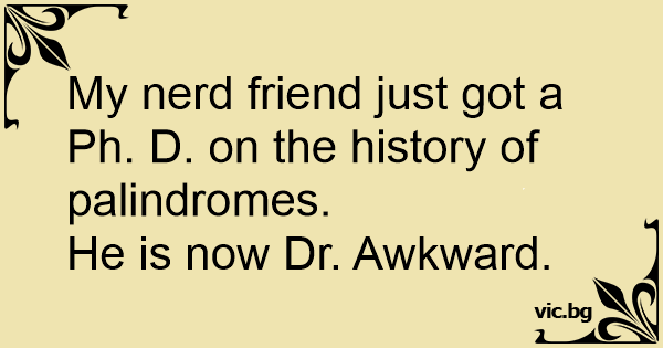 My nerd friend just got a Ph. D. on the history of palindromes.