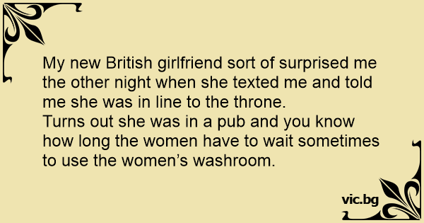 My new British girlfriend sort of surprised me the other night when she texted me and told me she was in line to the throne.