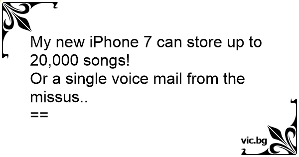 My new iPhone 7 can store up to 20,000 songs!Or a single voice mail from the missus..== 0 0 0 Marriage and Family Jokes Single People Jokes Apple and iPhone Jokes