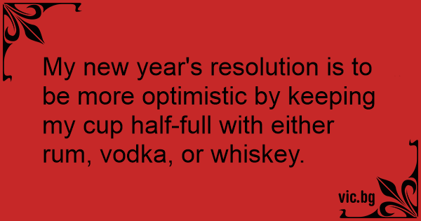 My new year's resolution is to be more optimistic by keeping my cup half-full with either ruм, vоdка, or whiskey.