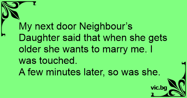 My next door Neighbour’s Daughter said that when she gets older she wants to marry me. I was touched.