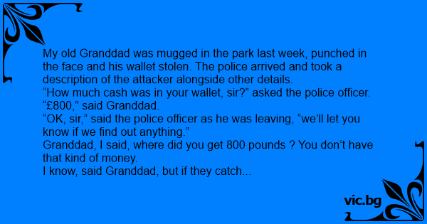 My old Granddad was mugged in the park last week, punched in the face and his wallet stolen. The police arrived and took a description of the attacker alongside other details.