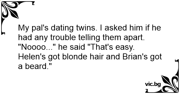 My pal's dating twins. I asked him if he had any trouble telling them apart.