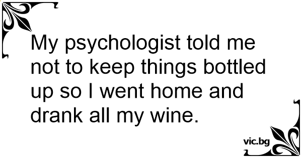 My psychologist told me not to keep things bottled up so I went home and drank all my wine.