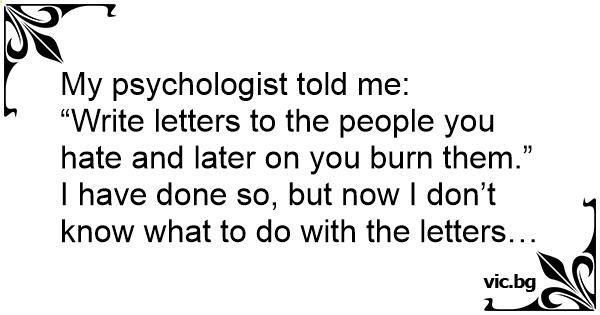 “Write letters to the people you hate and later on you burn them.”