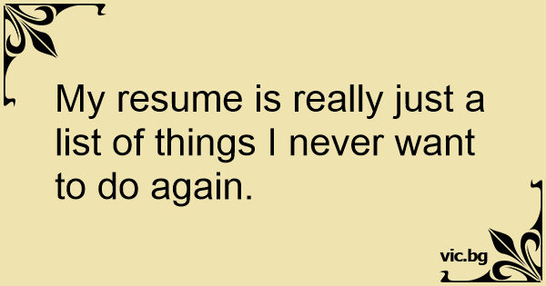 My resume is really just a list of things I never want to do again.