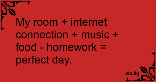 My room + internet connection + music + food - homework = perfect day.